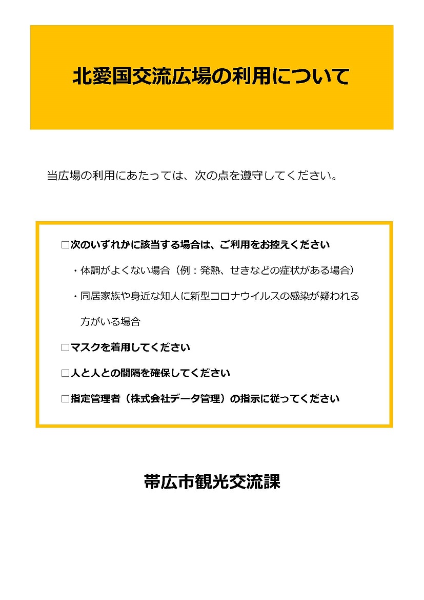 新型コロナウイルス感染症対策の為、当広場のご利用にあたっては下記の点を遵守願います。
